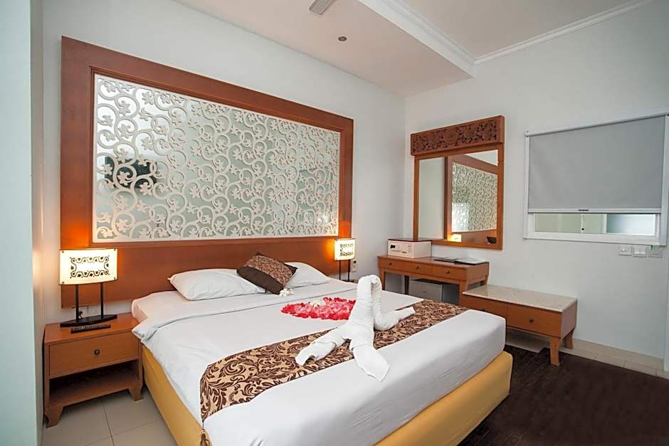 On-site dining is offered at Samsara Warung, serving Indonesian and International cuisines for meals and snacks. An outdoor swimming pool invites a refreshing dip after a day of exploring Legian. Free beach chairs and loungers make sun-soaked moments easy, poolside or by the shore.